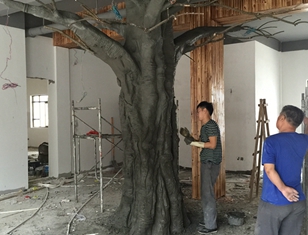 安徽九華山佛緣基地仿真包柱子榕樹(shù)高3.5米直徑80公分,采用水泥直塑與真樹(shù)枝結(jié)合。工期5天