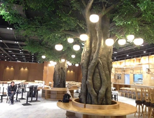 本項(xiàng)目建設(shè)在南京私人會(huì)所咖啡館,2棵小的水泥仿真樹(shù)把中間鋼結(jié)構(gòu)包裹,即遮擋原有鋼柱又起到室內(nèi)布景效果。直徑5.cm高度2.6米。樹(shù)葉搭配著櫻花樹(shù)葉。