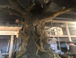 本項(xiàng)目建設(shè)在南京高淳獅樹(shù)鎮(zhèn),設(shè)計(jì)師靈感來(lái)源于獅子,把整體樹(shù)形塑造成獅子形狀。采用水泥直塑方法。在室外就不采用真樹(shù)干嫁接方法,這樣更好的適應(yīng)室外不良環(huán)境。工期20天樹(shù)葉采用樟樹(shù)葉。