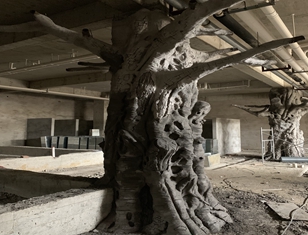 本項(xiàng)目建設(shè)在揚(yáng)州一家知名連鎖機(jī)構(gòu)內(nèi)部有2個(gè)水泥柱子,采用仿真樹包裹。柱子直徑80見方,假樹做成型達(dá)到1.5米。樹高4米,樹枝伸展直徑6米。樹葉800枝。工期12天,采用直徑焊接方式。