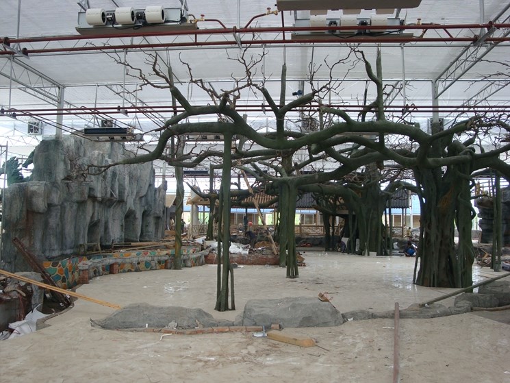 恭賀本公司參與上海崇明島室內(nèi)仿真景觀-假山假樹制作。本項(xiàng)目是當(dāng)?shù)氐谝粋(gè)生態(tài)園建設(shè)。我們從設(shè)計(jì)到施工一體化建設(shè)。內(nèi)部塑石假山制作,仿真假樹制作。水泥雕塑,仿木屋及土建建設(shè)。工期6個(gè)月。