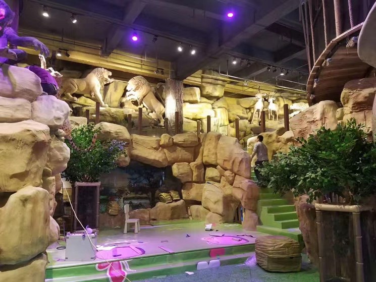 室內(nèi)動物園目前是市面比較熱捧的行業(yè)。室內(nèi)塑石假山包裹墻面隨之變的流行起來。施工總面積1800平方米工期3個月。