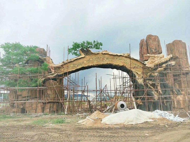 恭賀本公司承接徐州豐縣生態(tài)園仿真大門,本項(xiàng)目采用塑石假山與仿真枯樹結(jié)合方法,總長20米假山面積400平方米,門內(nèi)跨8米高4.5米,施工工期45天。