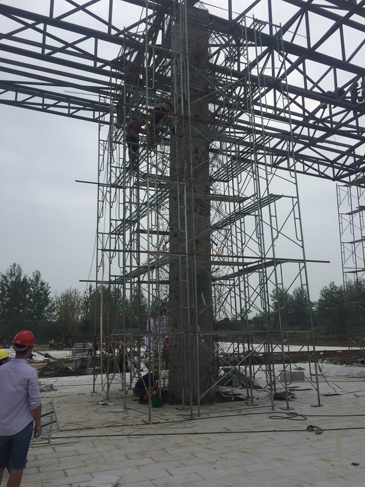 水泥塑石假山包柱子仿真樹仿真樹大門假山大門假山假樹大門