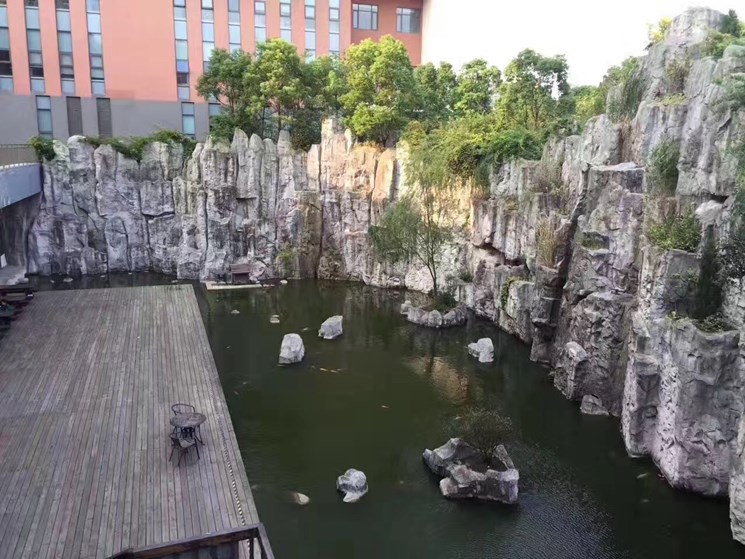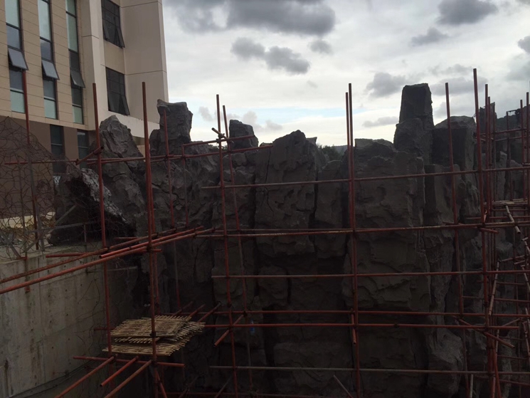 恭賀本公司參與浙江舟山同濟(jì)醫(yī)院舟山分院塑石假山施工,本項(xiàng)目總工期45天,采用水泥雕刻工藝仿真度達(dá)到90%,是目前國內(nèi)最主流工藝。項(xiàng)目是下沉廣場高13米周長45米。
